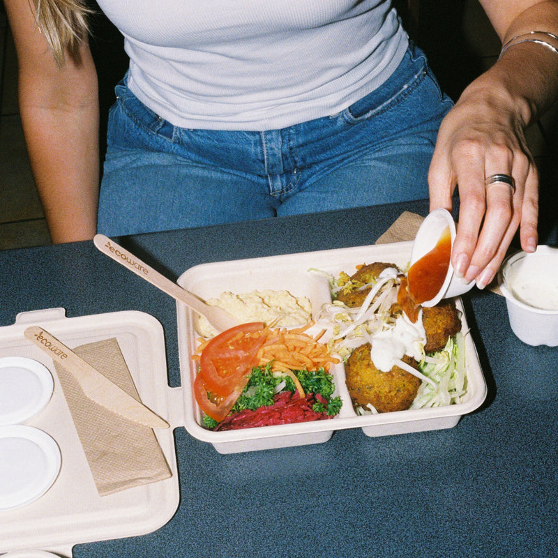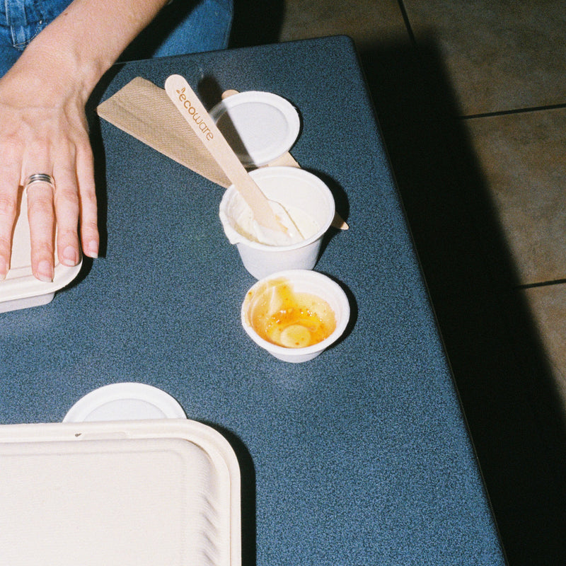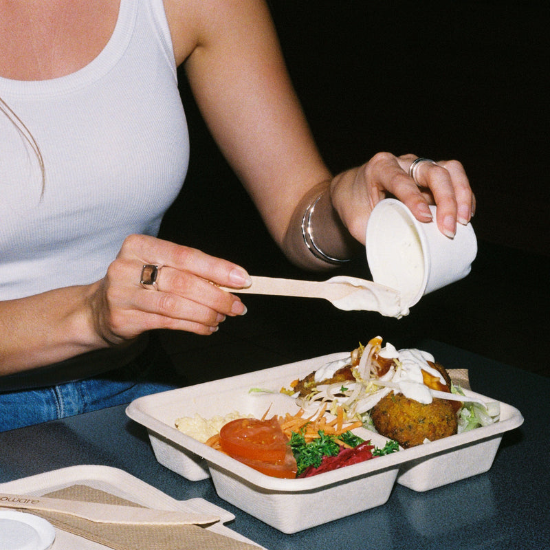 Separate your sauce. Our sugarcane sauce containers are made of sugarcane pulp, a 100% renewable resource and alternative to petrochemical plastics. They are certified for home and commercial composting. Custom-designed lids provide a secure fit, making these containers ideal for takeaway sauces, mayo, and anything really that your customers would want on the side. Available in 60ml and 120ml. The price includes a sauce container and lid.