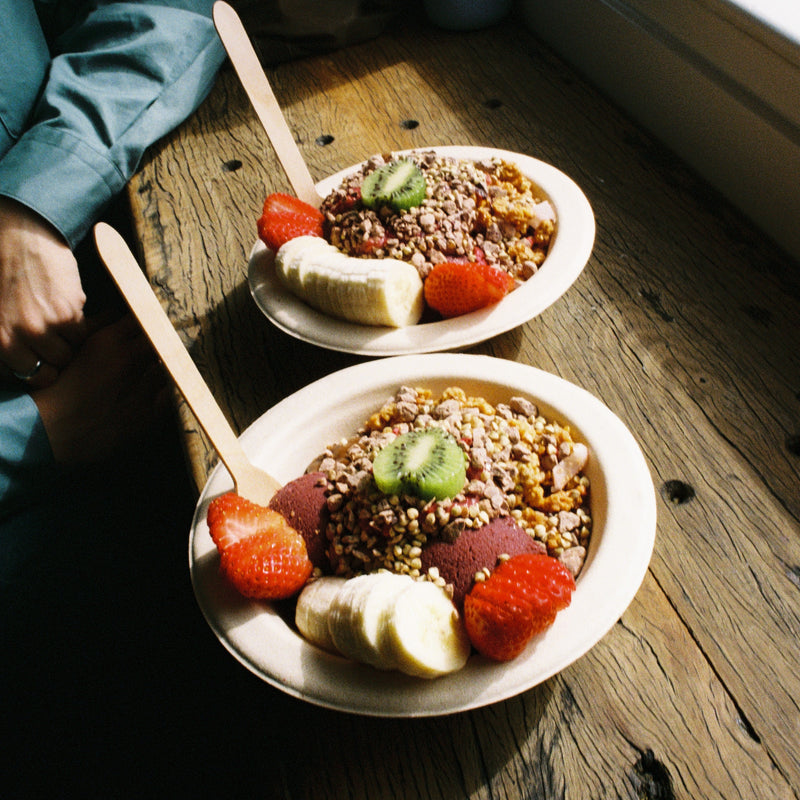 Our 500ml sugarcane bowls with no lid are made of sugarcane pulp, feature a wide rim, and are suitable for various fast food menu items. Tight-knit fibres make these bowls suitable for hot foods such as ramen, soups, and curries, and they are certified for home and commercial compost. Part of our sugarcane range, these bowls were designed to help tackle the vast amounts of plastic packaging used in takeaway food deliveries, minimising the environmental impact of convenience culture.