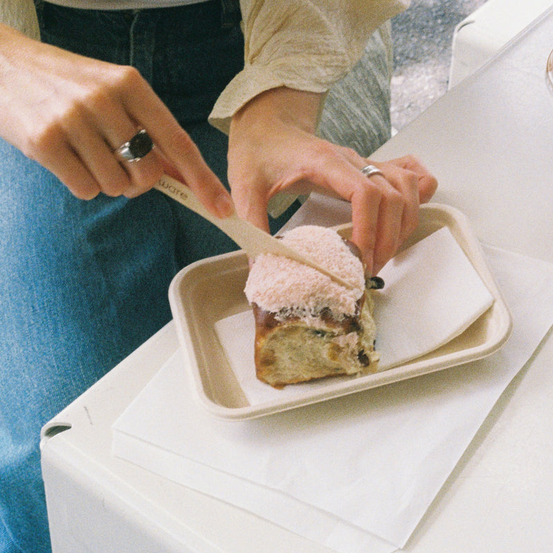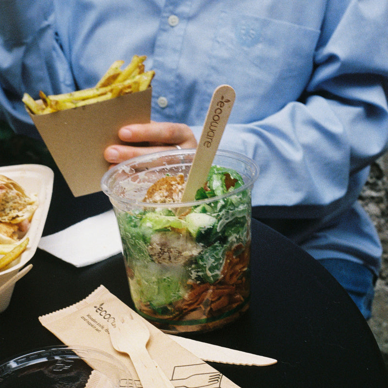 Our wooden cutlery is made from birch wood, a fast-growing species native to Northeastern Europe. This durable material is fine-tuned, buffed, and smooth, perfect for gelato, Mie goreng, and everything in between. Our cutlery range includes forks, spoons, knives, teaspoons, stirrers, and sporks. We also offer cutlery sets complete with a napkin.