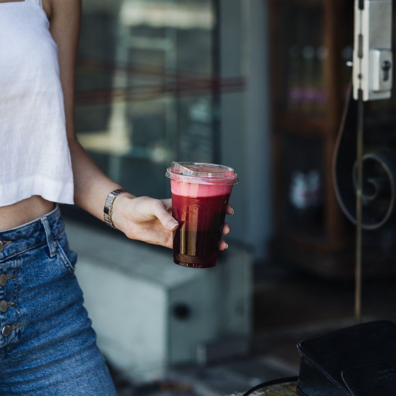 Ideal for takeaway sodas and cold-pressed juices, our straw-free lid is designed to fit our cold, clear takeaway cups ranging between 300-700ml. Effectively removing the need for a straw and lowering the waste created from our takeaways, these lids are also made from the Ingeo™ brand of polylactic acid (PLA)—produced from renewable feedstocks such as corn, sugar cane or beets, providing an alternative to petrochemical PET or PP lids.